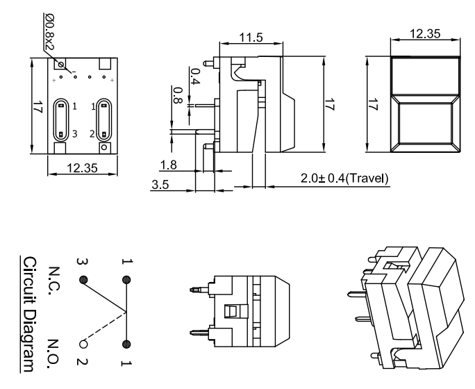 絕緣電阻:100mΩ 行程:2.0±0.4mm 操作力:170±50gf